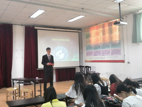 此次比赛共分单选题、多选抢答题和安全文明讲解三个环节,均围绕校园安全文明。第一环节中,各小组队员配合默契,积极答题,充分展现出大学生的智慧和风采;第二环节中,每队派出一名队员进行抢答,各队代表敏锐应答,不甘示弱,其精彩表现赢得台下阵阵喝彩声;第三环节中,各队纷纷围绕校园安全文明这一主题讲解视频,列举高校真实案例和典型案例,都在不同程度上强调了安全文明的重要意义。最后,经过激烈角逐,法学16-1班一队荣获一等奖。