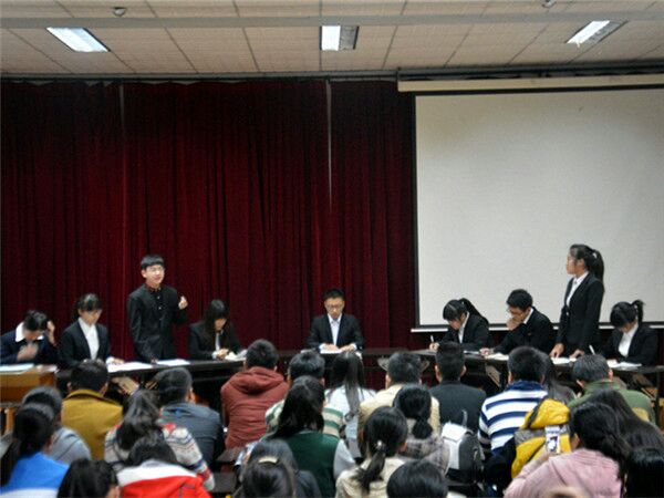 为增进广大同学对辩论的认识和兴趣,全面提高同学们的语言组织能力和逻辑思维能力,加深对传统文化的认识,11月5日下午,由文法系团总支主办,思辨社承办的大学生辩论赛在文秘情景实训室成功举办。