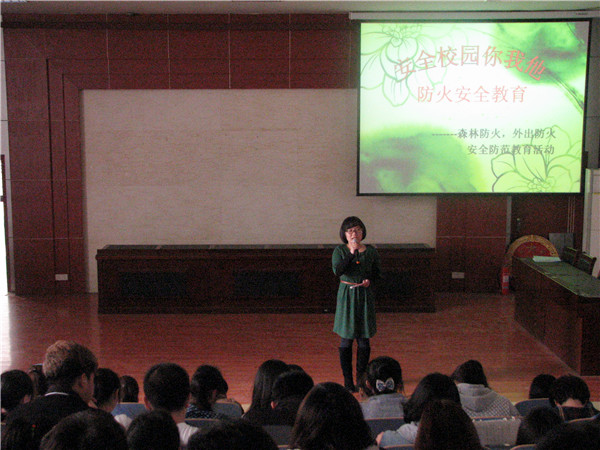 为加深同学们对防火知识及安全问题的了解,尤其加强泰山景区防火的宣传,3月27日下午,由文法系团总支主办,自律会承办的防火安全教育活动在模拟法庭举行。